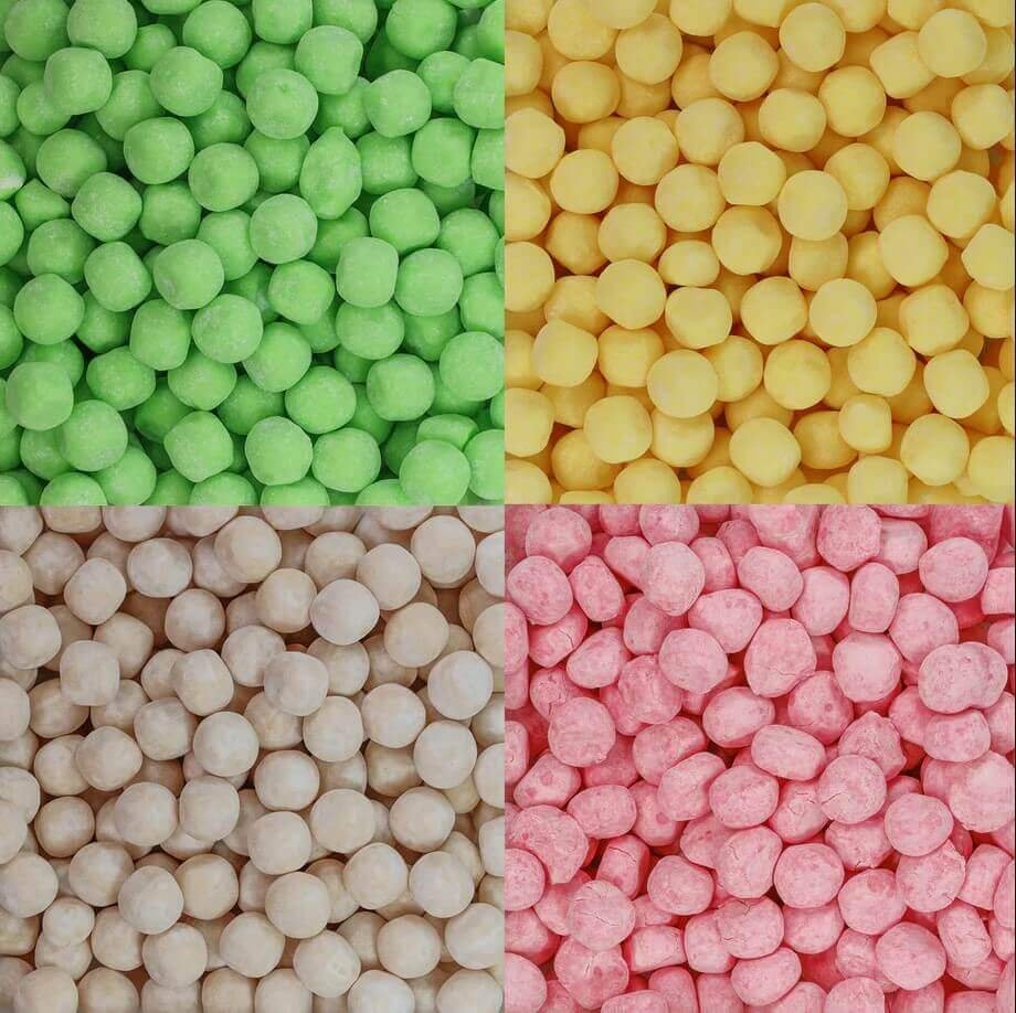 Bonbons tendres caramel-neige, texture fondante et goût unique.