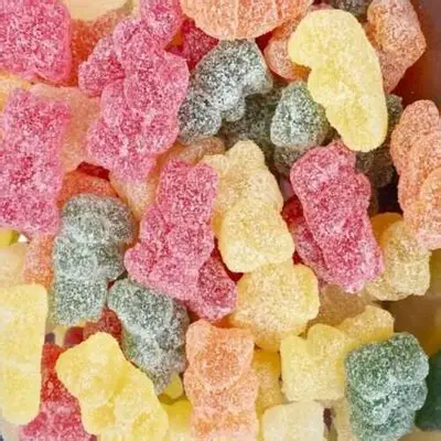 Bonbons gélifiés en forme d’oursons, recouverts de sucre acidulé, goût fruité intense.